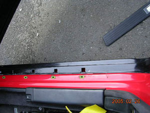 | まず、サイドシルを外します。前後フェンダー内のビスを外します。 | |
