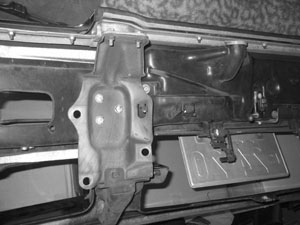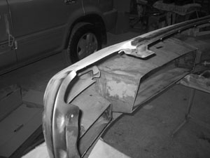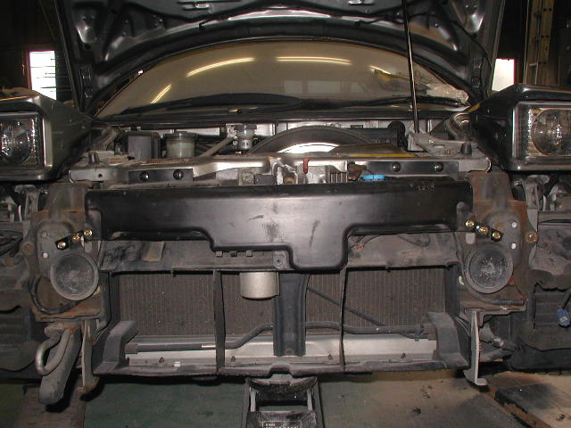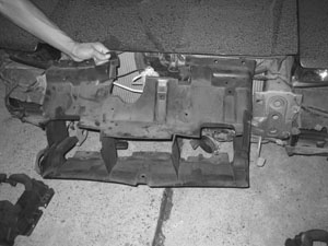 | 外したバンパーと一緒に外れたこの部品を外して新たにフルバンパーに付け直してください。 (※下の2枚の画像の車両の方はライト周りのフレームが切断されていますが、切断する必要はありません。) |