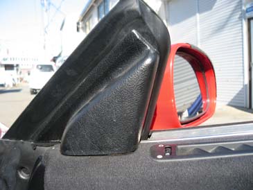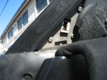 3ケ所のネジを外すと純正品が外れます。 代わりにカーボンサッシュをネジで固定します。