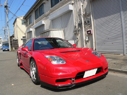 固定ライト用バンパーに装着するリップスポイラーです。今回のデザインコンセプトは アグレッシブかつ上品なものでした。NSX本来の持つプロポーションを最大限、尊重しながら、 全体的には上品さを求め、穏やかなラインながら、大型のダクトを設ける事でノーマルとは一線 を画すアグレッシブさを表現しました。